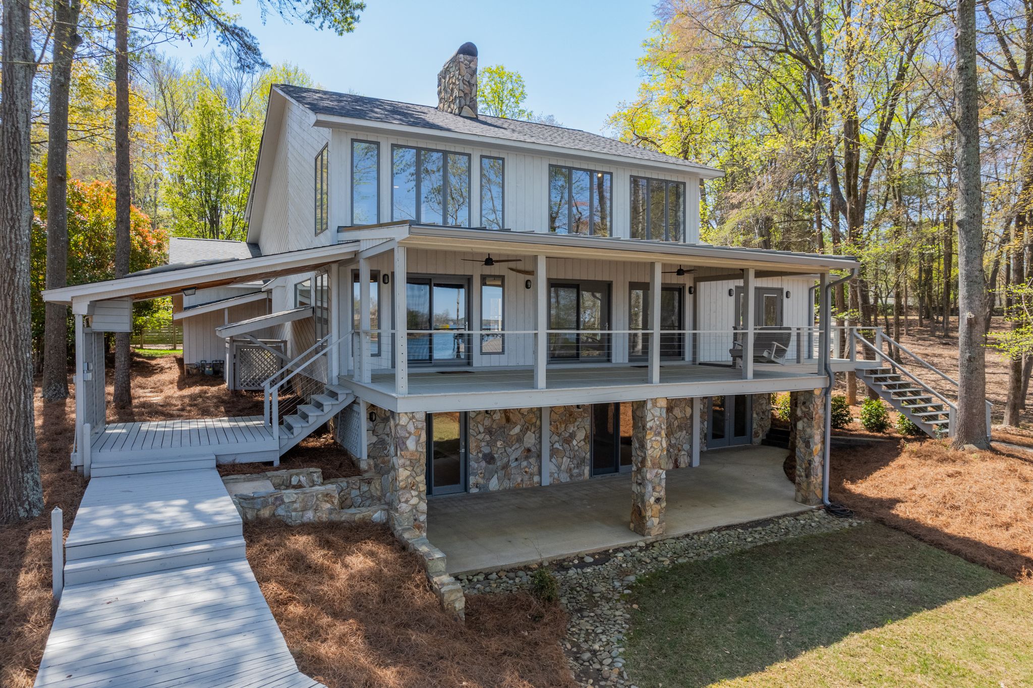 Nestled on the tranquil shores of Lake Norman lies a picturesque lake house, the perfect vacation spot for those seeking a peaceful retreat. As you step through the front door, you're greeted by a beautifully renovated interior, complete newly finished hardwoods fresh paint and lake views from nearly every window. The gorgeous renovated waterfront home is a rare find to enjoy lakefront living and a walk out basement is the perfect addition for extra space.